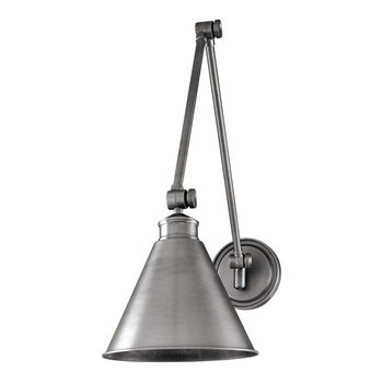 Articulated arms and metal construction are a few of the lasting innovations the industrial era bequeathed us. Exeter illuminates according to your need, using these same principles. At three points from backplate to shade, you can adjust Exeter along an axis perpendicular to the wall to direct its light where you want it. The backplate's pivot allows you to move the arm to the left or right. Available with either a metal shade consistent in finish with the rest of the piece or a glossy white opal diffuser, Exeter makes for both a useful task light and a beautiful accent light.,Articulated arms and metal construction are a few of the lasting innovations the industrial era bequeathed us. Exeter illuminates according to your need, using these same principles. At three points from backplate to shade, you can adjust Exeter along an axis perpendicular to the wall to direct its light where you want it. The backplate's pivot allows you to move the arm to the left or right. Available with either a metal shade consistent in finish with the rest of the piece or a glossy white opal diffuser, Exeter makes for both a useful task light and a beautiful accent light.
