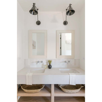Utility and luxury merge in our Garden City family. Hand-rubbed finishes that continue inside the shade make these adjustable sconces very attractive in their all-metal versions. Metal-rimmed white glass shades allow more light diffusion in another, equally appealing option. The former enhances its function as a task light;the latter amplifies its accent potential. Machined details such as the rings on the cast-metal backplate and the turned socket holder give Garden City a vintage industrial feel. We wire Garden City with an on/off switch, making it ideal for a bedside reading lamp or as a replacement fixture in historic homes that lack a separate wall switch.,Utility and luxury merge in our Garden City family. Hand-rubbed finishes that continue inside the shade make these adjustable sconces very attractive in their all-metal versions. Metal-rimmed white glass shades allow more light diffusion in another, equally appealing option. The former enhances its function as a task light;the latter amplifies its accent potential. Machined details such as the rings on the cast-metal backplate and the turned socket holder give Garden City a vintage industrial feel. We wire Garden City with an on/off switch, making it ideal for a bedside reading lamp or as a replacement fixture in historic homes that lack a separate wall switch.