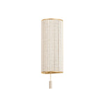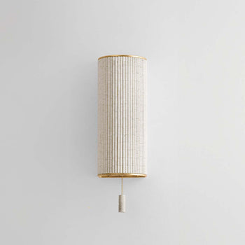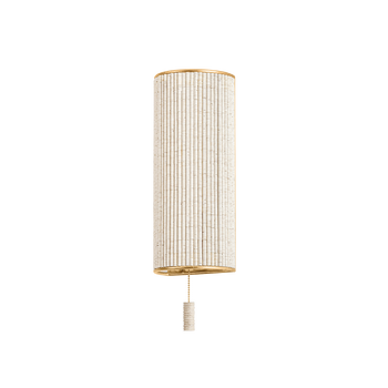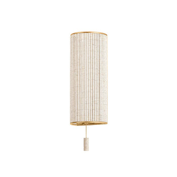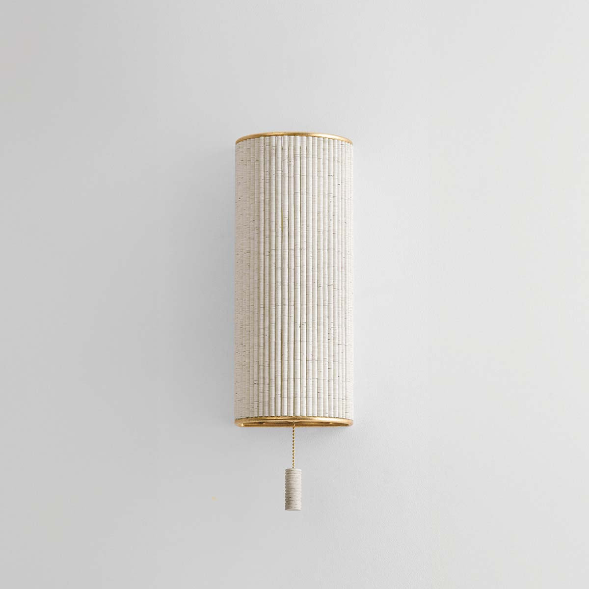 A simple Deco-inspired silhouette receives an elegant makeover in the form of the Hampden sconce. Meticulous layers of elegant white Coco beads cover the shade, emphasizing the beauty of the material and craftsmanship. The inclusion of a dangling pull chain provides a playful addition. The Vintage Gold Leaf details, including the circular backplate, make for a luxurious finish. *Due to the one-of-a-kind nature of the medium, exact colors and patterns may vary slightly from the image shown.
