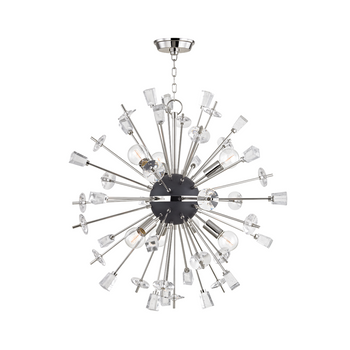 Liberty starts with a core of matte-black metal, banded round its middle with a flashing contrast from the piece's finish of choice-brass or nickel. Retro coil Bulbs in ballooning clear glass create the primary light source;in larger models, tubular exposed-filament Bulbs alternate. Cut-crystal discs and icy handcrafted glass adorn protruding rods, refracting the dazzling light in a thousand directions.,Liberty starts with a core of matte-black metal, banded round its middle with a flashing contrast from the piece's finish of choice-brass or nickel. Retro coil Bulbs in ballooning clear glass create the primary light source;in larger models, tubular exposed-filament Bulbs alternate. Cut-crystal discs and icy handcrafted glass adorn protruding rods, refracting the dazzling light in a thousand directions.