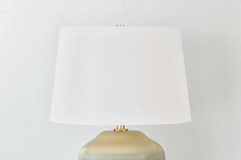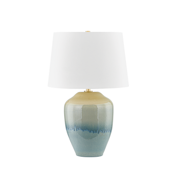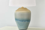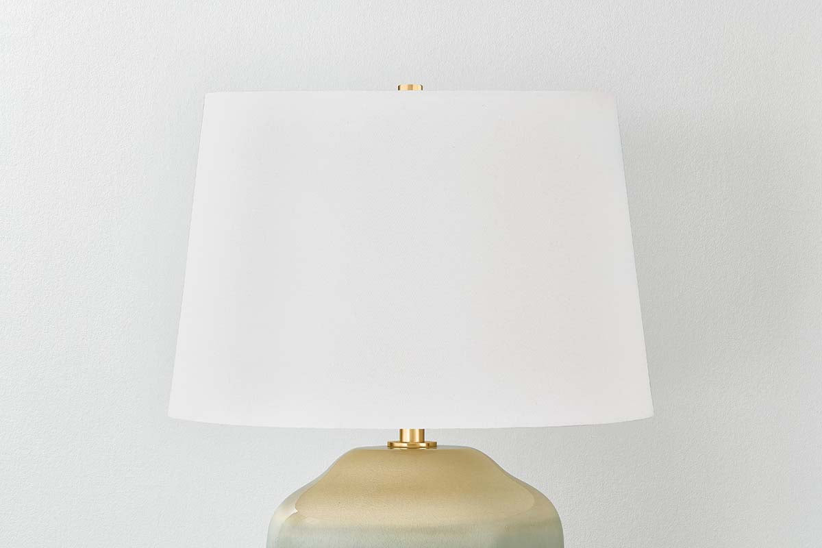 Capturing the colors of sand and sea with a mesmerizing drip effect, this ceramic table lamp is a serene addition to modern interiors. The painterly effect of Montville gives it a fresh-from-the-studio feel, while the glaze reflects light. Topped with a large linen drum shade and finished with Aged Brass metalwork, Montville makes for an artful bedside or living room accent piece.