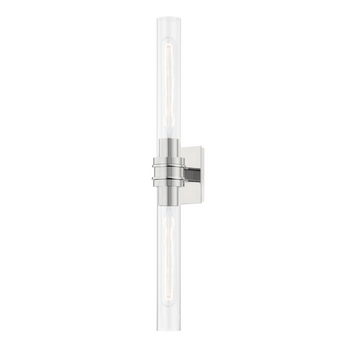 Incandescent tube Bulbs are on display inside the gorgeously simple clear glass shades of this highly adaptable two-light sconce. A thick, round holder, rectangular backplate and sleek socket, all in matching metal, add to the fixture's clean, versatile look. Choose to mount Oakfield horizontally or vertically.,Incandescent tube Bulbs are on display inside the gorgeously simple clear glass shades of this highly adaptable two-light sconce. A thick, round holder, rectangular backplate and sleek socket, all in matching metal, add to the fixture's clean, versatile look. Choose to mount Oakfield horizontally or vertically.