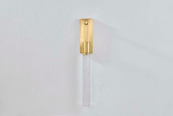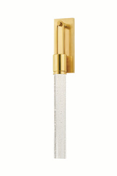 Illuminated by energy-efficient LED lighting, this contemporary sconce features clear-seeded glass that mimics bubbles suspended in a tube of water. The innovative design plays with the concept of hanging the glass from an extended loop. The light elegantly dangles from a decorative hook, creating a visually captivating effect. Available in Aged Brass or Distressed Bronze finishes, Raynham blends clever design-forward innovations with modern style.