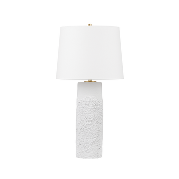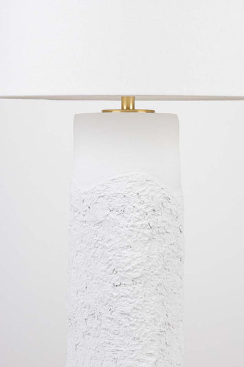 Reminiscent of a found artifact, Tolland has a raw, earthy appearance that pairs beautifully with trending antique and hewn wood tones. The natural quality of the ceramic base is offset by the glimmering Aged Brass metalwork, which adds a polished note. Topped with a fresh linen shade, this monochromatic white lamp is pure and simple.