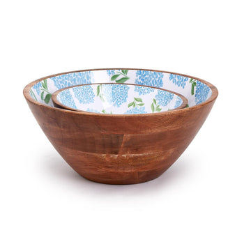 Two's Company Hydrangea Set of 2 Hand-Crafted Wood Bowl - Mango Wood/Food Safe Lacquer