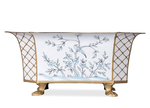 Bring timeless elegance to your indoor or outdoor spaces with the Octagon Chinoiserie Planter. Featuring a graceful elongated octagonal shape, this metal planter is adorned with delicate hand-painted blue floral and scenic motifs on a rich ivory background—evoking classic Eastern artistry with a modern touch.