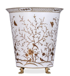 The Enchanted Home Ivory & Gold Chinoiserie Footed Floor Planter
