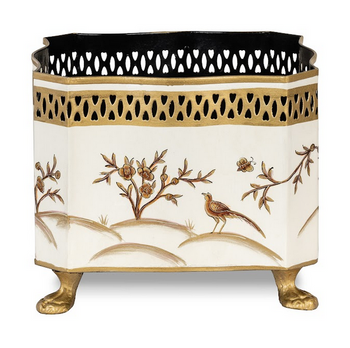 Discover the beauty of our Chinoiserie hand-painted metal planters. Each planter features intricate, vibrant designs inspired by traditional chinoiserie artistry, making every piece a unique addition to your home.