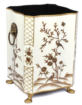 The Enchanted Home Ivory & Gold Square Footed Wastepaper Basket