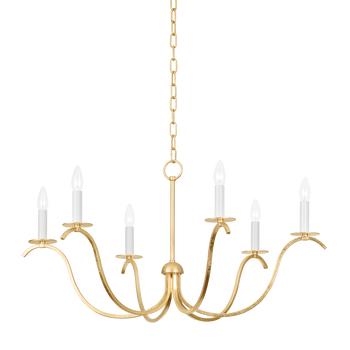 Slender, sweeping arms hold classic candlesticks for a simple, yet dramatic silhouette. The elegant Gold Leaf finish and chain detailing elevate the look. Jaclin's transitional design makes it perfect statement lighting in both traditional and modern interiors.