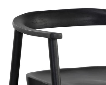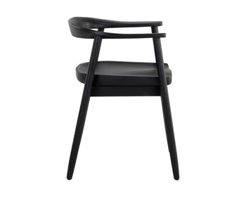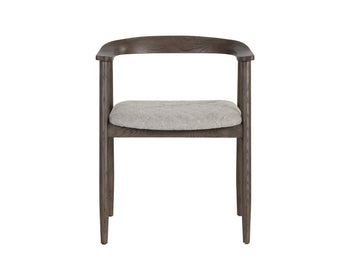 An alluring mid-century dining armchair that embraces the beauty of simplicity. Features a comfortable, quilted cushion in dove cream fabric. Completed with a brown, weathered solid oak wood frame. As wood is an organic, porous material, these pieces will contain natural variation of texture and may also exhibit fine indentations and cracks. Wood pieces will also display a disparity of colour and grain, and visible knots and burls that add to the character of each piece.