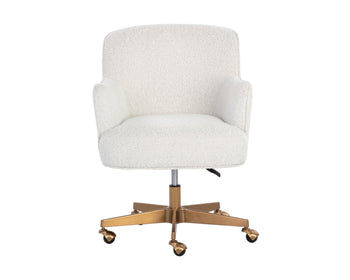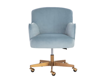 Design a workspace that projects chic comfort with this modern office chair. Features a curved seat in cornflower blue sky fabric with a gold steel base. Includes added castors for mobility.