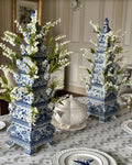 Capture the essence of timeless elegance with our Blue and White Tulipiere. Each piece is a masterpiece of craftsmanship, adorned with delicate blue. and white hand-painted scenes that wrap around the entire body of the tulipiere. Perfect as a standalone statement piece or paired with its companions, this tulipiere is composed of four separate pieces.