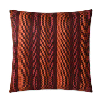 The Lattitude Pillow in Merlot features multicolor stripes in shades of burgundy and scarlet. This pillow has the same fabric on front and back. It may also be available as a lumbar pillow and come in the colorways: Merlot and Peacock.