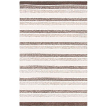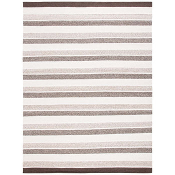 The strategic height of 1/4" makes this rug seamlessly adaptable to a variety of spaces, providing an understated elegance with its clean and low-maintenance profile. Its Ivory and Brown hues are thoughtfully interwoven in a classic striped pattern that exudes a sense of calm and order, effortlessly complementing both modern and traditional decors.