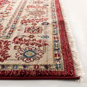 The color palette is a sophisticated blend offering a neutral base with vibrant accents that easily complements both classic and contemporary interiors. The design, as can be seen in the image, showcases an intricate array of floral and geometric motifs, patterns that speak to the storied past of artisan carpet creation.