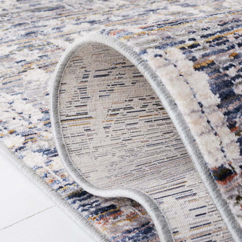 At a comfortable height of 1/4", the rug provides a plush underfoot experience while maintaining a low profile for ease of maintenance and furniture placement. The delicate balance of the light blue and ivory colors is complemented by a beautifully detailed pattern revealed in the image, showcasing an array of traditional motifs that will transport you to the grandeur of ancient times.