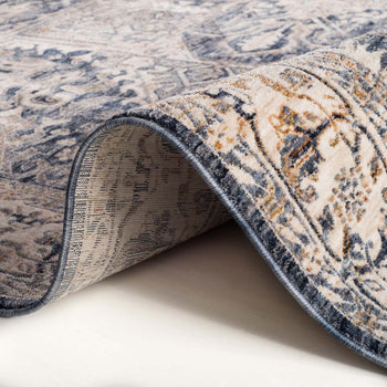 Adorned with a traditional-style pattern, the intricate design boasts ornate floral and geometric motifs that resonate with the opulence of bygone eras. The slip-resistant feature adds practicality, keeping the rug steadfast in high-traffic areas of your home, creating a safe and inviting environment. The rug showcased, while a different size, presents the detailed pattern that will be replicated in your unique piece.