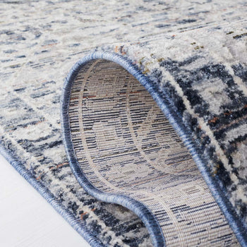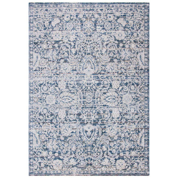 The intricate design showcases a beautiful array of floral and geometric patterns, set against a serene light blue and ivory color palette that adds a calming, upscale ambiance to any room. This piece is not just about aesthetics?it is also committed to environmental responsibility and consumer safety, as evidenced by its OEKO-TEX certification, ensuring it's free from harmful substances.