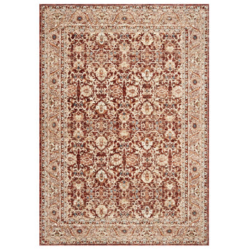 The deep oxblood color palette is rich and inviting, offering a sophisticated backdrop for the intricate patterns that adorn the rug. Floral motifs and decorative borders give it a time-honored look, while the contemporary construction provides durability and easy maintenance.