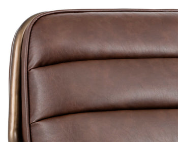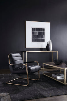 This retro-inspired lounge chair is perfect for lounge, living and office spaces. Handsomely designed with an exposed cantilever steel frame in a rustic bronze finish and horizontal channel tufting on the seat and seat back. Stocked in a masculine vintage cognac faux leather. Suitable for contract and residential environments. Handle With Care: This design has been crafted with faux leather. Faux leather is manufactured to reflect the natural characteristics of leather; as such, colour variations, markings, wrinkles, grooves, and light scratches are appreciated characteristics. No two pieces will be alike. Visit our Product Care page for more information on how to ensure the lasting beauty of this piece.