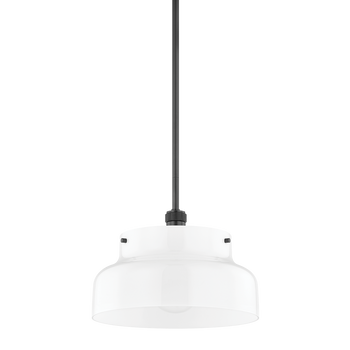 A streamlined opal glossy glass shade is accented with subtle metal details, like the knurling on the socket cup, adding visual interest to this modern pendant's clean, minimal look. A great choice to style in multiples over the kitchen island or solo over a small dining area.