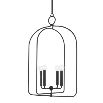 With its open, arched metal frame and gold leaf or aged iron finish, Mallory makes a stylish statement. Clear, round bulbs atop sleek, straight candle holders create a beautiful contrasting effect. Available as a sconce, pendant or linear, each fixture hangs from a round metal loop giving the piece a feeling of motion.