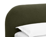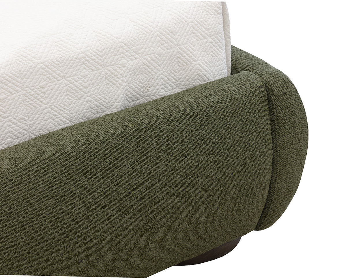 A visual embodiment of softness, the Marin Bed brings mesmerizing curves to the bedroom. Smooth to the touch with a well-padded headboard, this alluring bed is upholstered in velvety kona camel fabric with a low profile elevated on round solid oak wood legs.