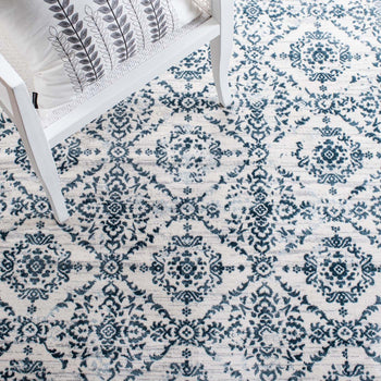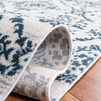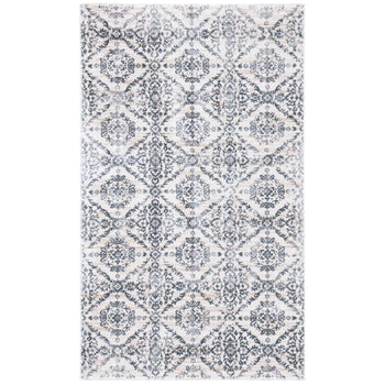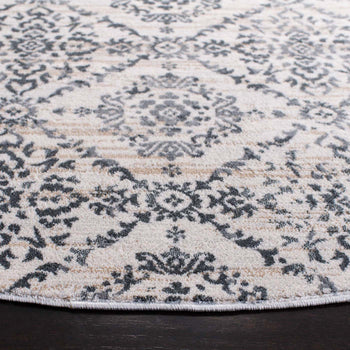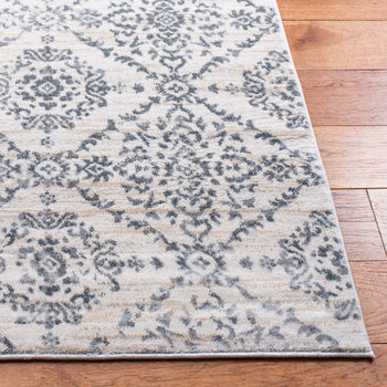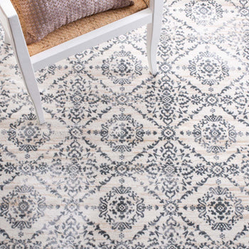 Featuring an elegant transitional style, this rug marries the classic intricacy of vintage designs with contemporary color palettes. The exquisite pattern, shown clearly in the image, displays a harmonious blend of cream and grey tones that create a serene backdrop for any decor.