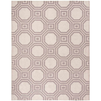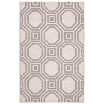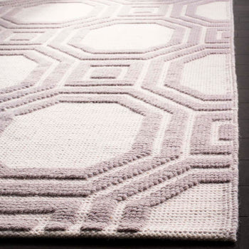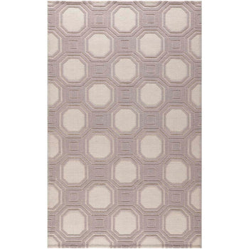 This rug boasts a stylish and intricate geometric pattern, presenting a harmonious blend of ivory and purple hues that evoke a sense of luxury and contemporary design. The beautiful interplay of colors and the hexagonal shapes create a mesmerizing aesthetic that naturally draws the eye, making it a captivating centerpiece for your decor.