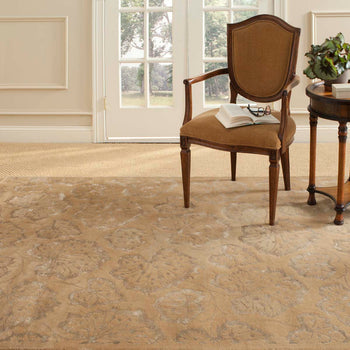 Introducing our exquisite Accent Area Rug in the luxurious shades of Hazelnut and Gold, now available in a cozy 2' 6" x 4' 3" size. Perfect for adding a touch of elegance and warmth to any room, this rug features a beautiful botanical pattern that infuses your space with a timeless charm.