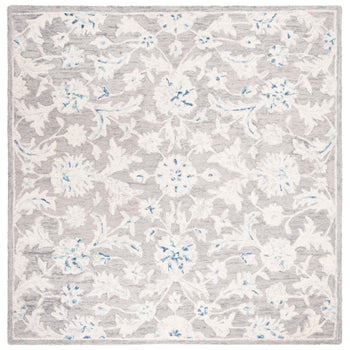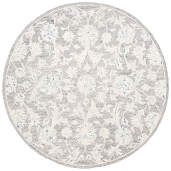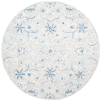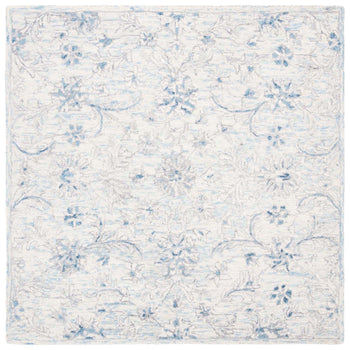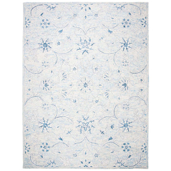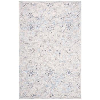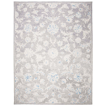 The design of this rug showcases a sophisticated traditional pattern with delicate botanical motifs accented by subtle hints of blue, infusing a serene and inviting ambiance into your living area, bedroom, or office. Each graceful flourish and ornate detail is a testament to the craftsmanship and heritage from the artisans of India.