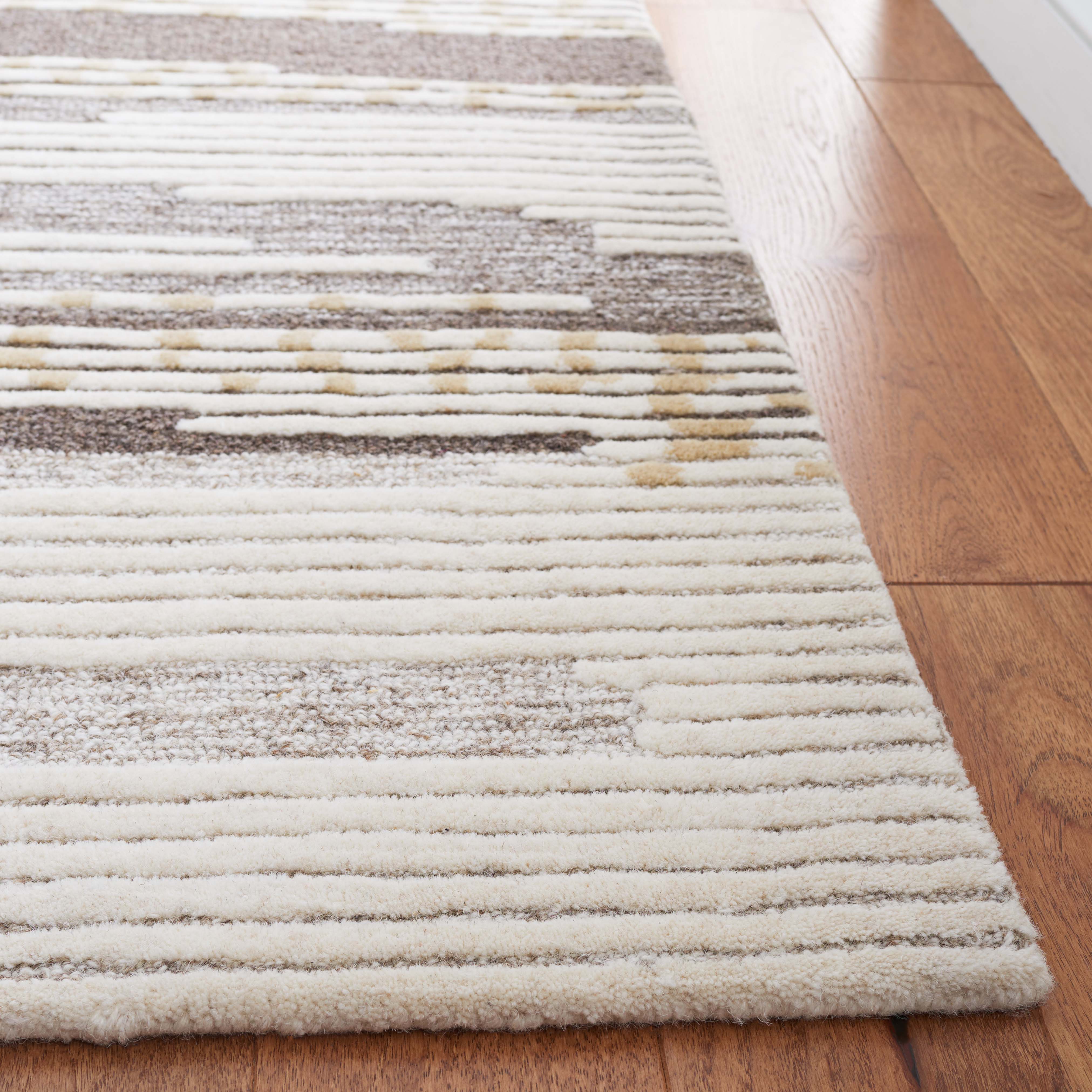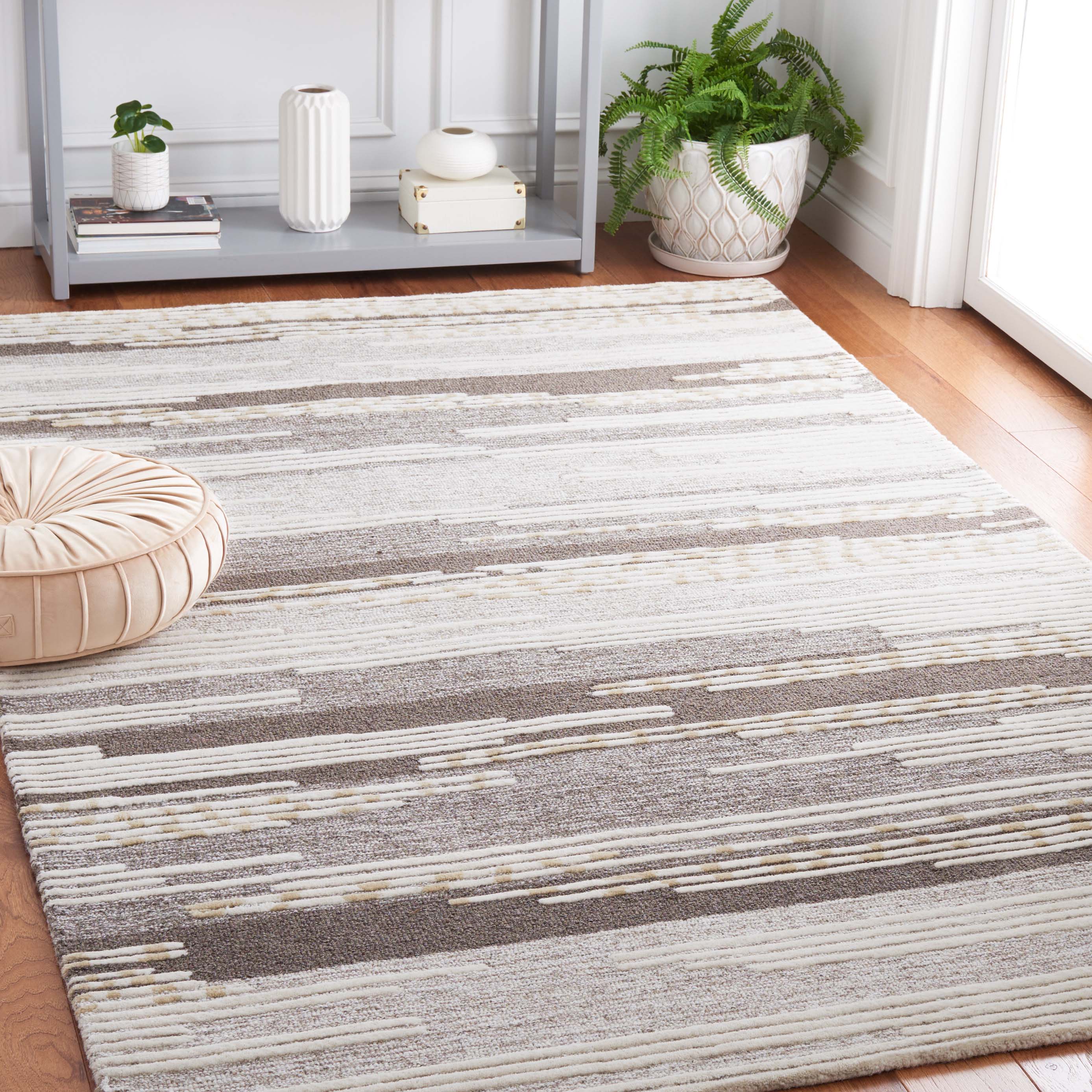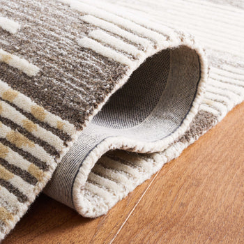 Our Modern style area rug boasts a natural and beige color palette, exuding elegance and warmth that complements any decor. Observing the rug's pattern through the image provided, we are struck by its serene beauty ? a harmonious blend of horizontal striping with subtle variations in texture and tone that create a serene, yet dynamic visual interest.