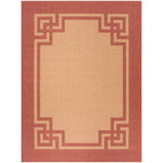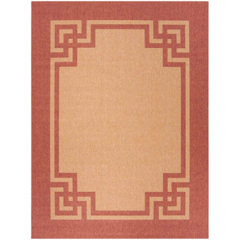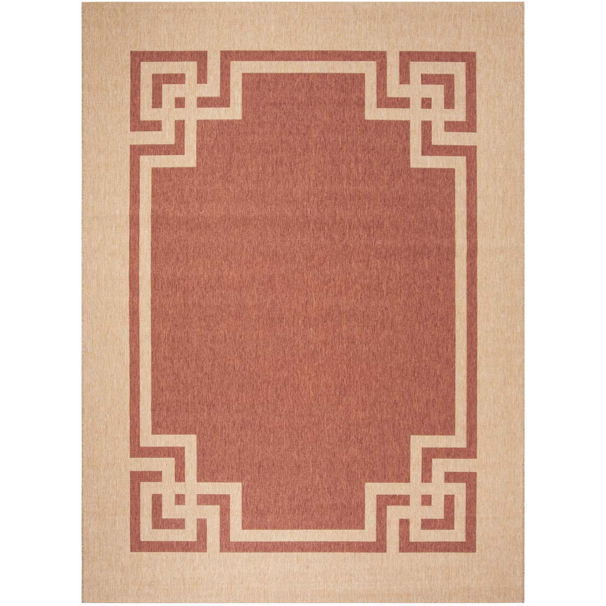 Designed and made in Turkey ? a region renowned for its rich history of rug making ? this area rug showcases a pattern that balances simplicity with decorative complexity. The terracotta border features geometric motifs and angular lines that provide a structured yet stylish framework to the subtle beige central area.