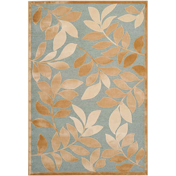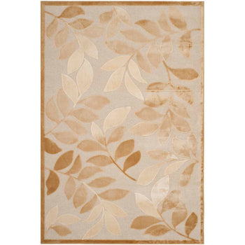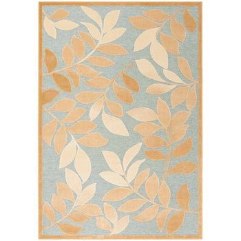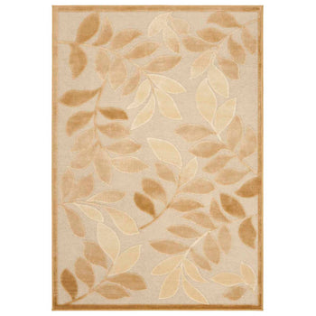 The rug showcases a serene heavy cream background, tastefully adorned with a botanical pattern that exudes a timeless charm. The leaf motifs are artfully distributed, catching the eye with their natural grace and composition.