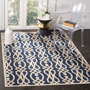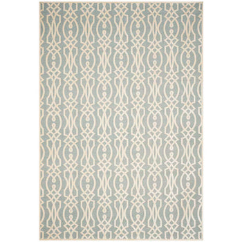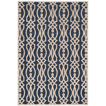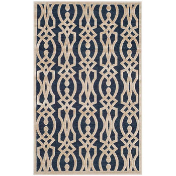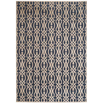 The rug's pattern is striking, featuring a sophisticated geometric design that draws the eye without overwhelming the space. Its combination of azurite blue and cream hues creates a look that?s both contemporary and timeless, easily complementing a variety of decor styles.