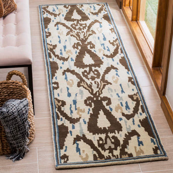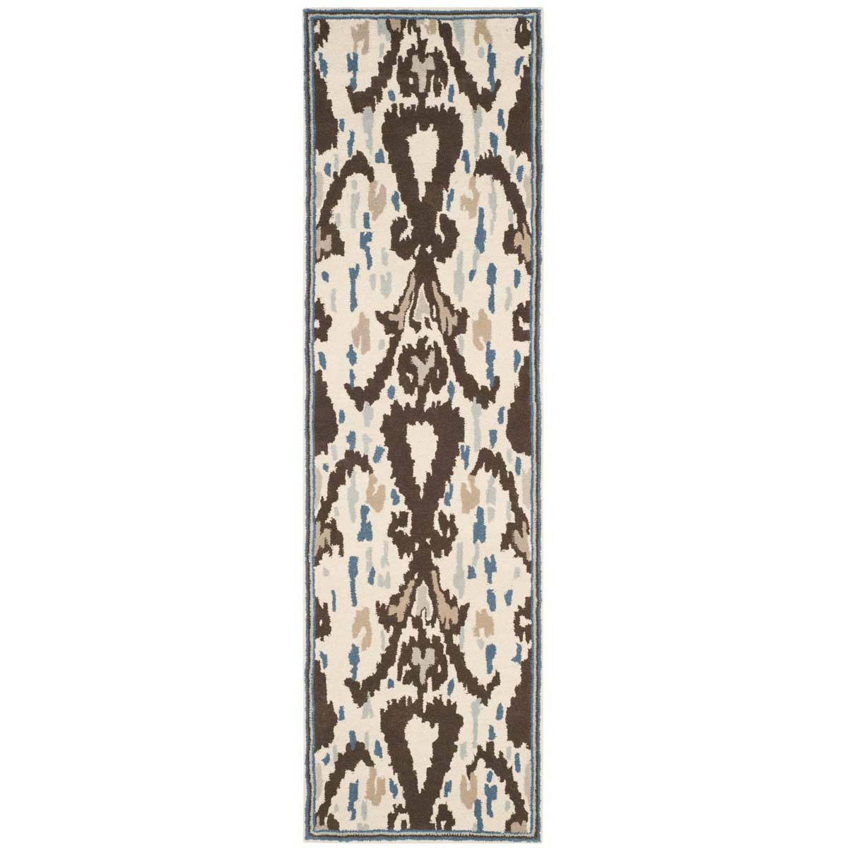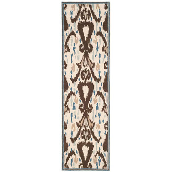 Crafted from the finest wool, this piece offers an enduring allure and tactile comfort that speaks of timeless craftsmanship. Its graceful design boasts a harmonious blend of organic shapes and traditional motifs, rendered in a sophisticated palette that brings contrast and visual depth to any interior. With a classic runner shape that's both versatile and practical, the design echoes an abstract ikat-inspired pattern that will add a touch of artisanal charm to your home.