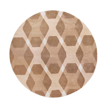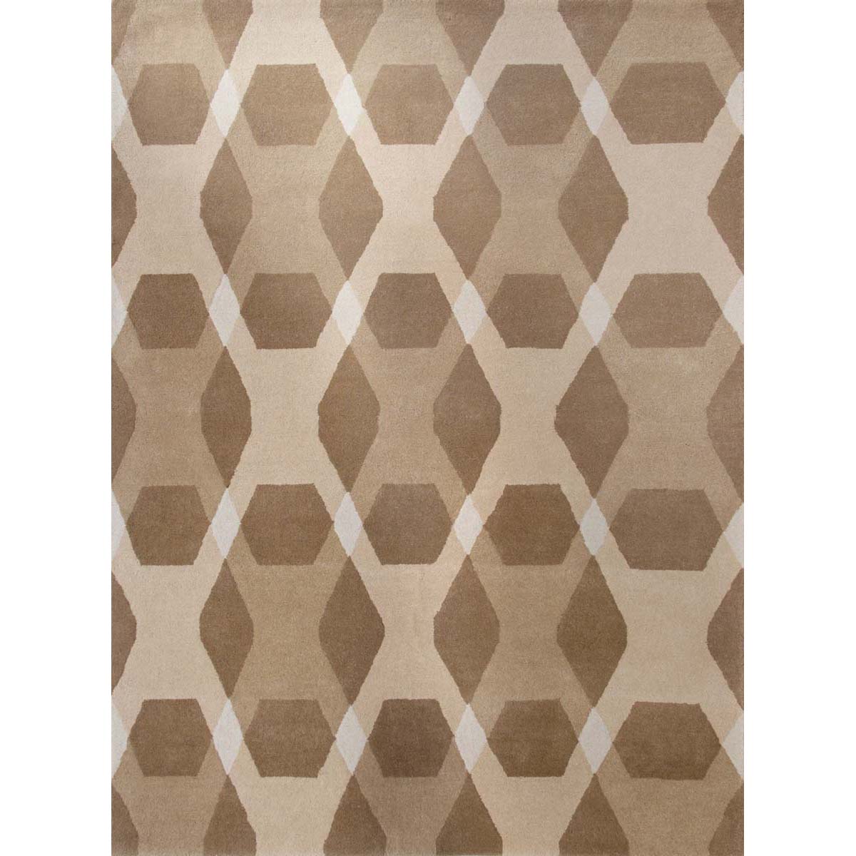 This rug features a chic and contemporary geometric pattern with sharp lines and repeated motifs, adding a touch of elegance and modernity to any room. The neutral beige backdrop is complemented by muted multi-tonal accents, making it a versatile addition to a variety of decor styles, whether it's anchoring a minimalist living room or enhancing a sophisticated bedroom setting.