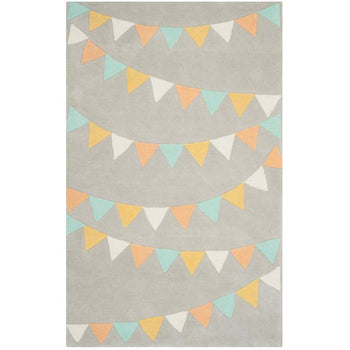 Adorning this serene grey canvas is a playful pattern of bunting in a pleasing array of pastel hues? gentle oranges, subtle yellows, and calming aqua tones that bring a touch of whimsy and a dash of color to any space without overwhelming it.