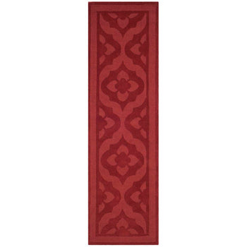Inspired by classic designs and made in India, this runner exudes a timeless quality. The rug features a symmetrical pattern, reminiscent of ancient motifs, which adds a touch of sophistication to its overall appearance. The vermillion palette speaks of warmth and lends a vibrant hue that anchors your space with its bold presence.