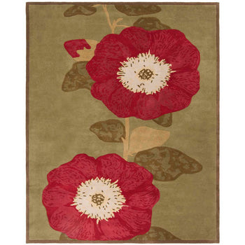 The lush dill tones of the rug set the stage for the stunning floral pattern that captures the eye with its vibrant reds and delicate greens. Each petal and leaf a testament to the meticulous work of skilled artisans, this rug's large bloom pattern is an ode to the timeless beauty of nature?s flora.