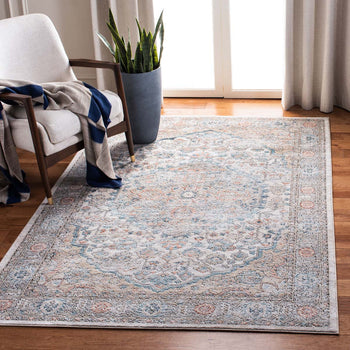 This handsome runner carries a plush pile height of 3/8 inches, offering a comfortable underfoot while maintaining easy door clearance. The sophisticated color palette of subtle greys and serene blues is adorned with a classic pattern that captures the artistry of traditional craftsmanship. The intricate borders and central medallion of the design create an aura of luxury and heritage, which complements a variety of decor settings.