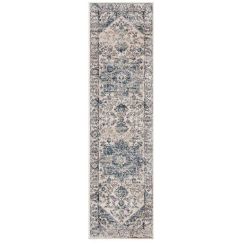 Elevate your home with the timeless elegance of our Traditional Ivory/Blue Runner Rug, a harmonious blend of old-world charm and modern craftsmanship. Perfectly sized at 2'-2" X 8' for corridors, entryways, or alongside beds, this rug adds a touch of sophistication to any space.