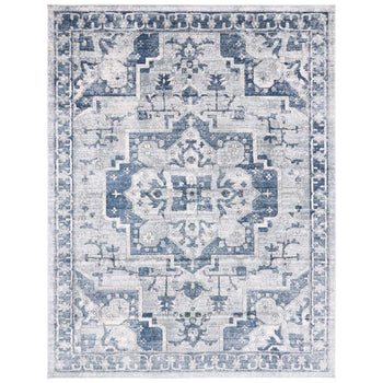 The rug's entrancing pattern, inspired by the ornate motifs of traditional design, weaves together navy and ivory hues to create a striking visual that demands attention yet seamlessly integrates into your existing decor. Its traditional style is complemented by intricate border detailing, encapsulating a sense of grandeur and sophistication.