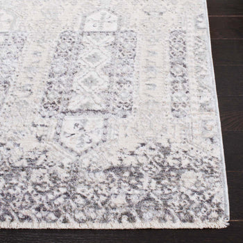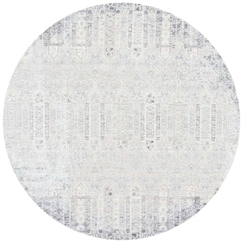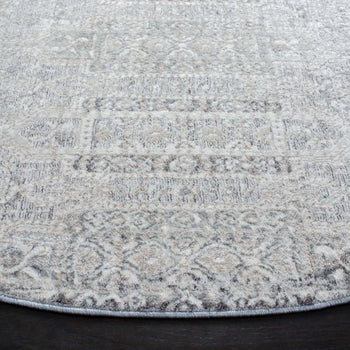 The rug's surface showcases a beautifully intricate pattern that draws inspiration from timeless designs, reimagined for the modern home. The subtle variations within the grey hues and the sophisticated pattern combine to create a visual texture that captivates and soothes.
