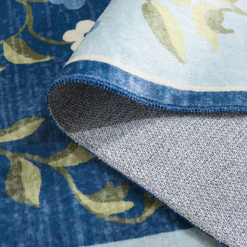 Enhance your living space with the timeless elegance of our Small Rectangle area rug, measuring a versatile 2 feet by 5 feet. The rug features a harmonious blend of dark blue and light blue, creating a serene and sophisticated ambience that complements any decor. Intricately designed with a floral pattern, it showcases an array of blossoms and vines, creating a picturesque garden scene that breathes life into your home.