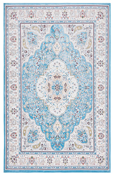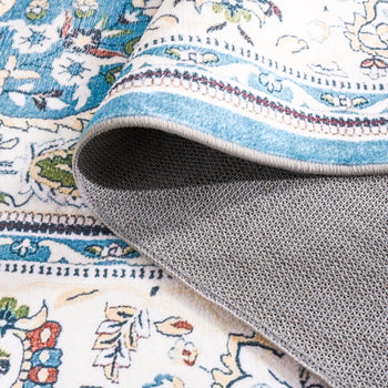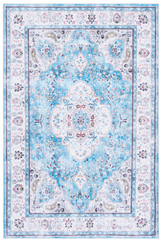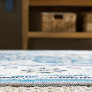 Discover the classic elegance of this 2x5 feet small rectangular area rug. Bathed in a vibrant turquoise color contrasted against soothing beige tones, it lends a refreshing and timeless appeal to any space. This traditional style rug features a streamlined 1/8-inch profile. Crafted using power loomed techniques and made from a durable polyester pile, this rug offers longevity and enduring aesthetics. Imported straight from China, its authenticity speaks for its quality. For your safety, its design includes a non-slip feature to keep the rug securely in place. It also boasts washable characteristics, making it easy to maintain and keep clean. Choose this beautiful turquoise and beige rug, meticulously crafted to bring a unique touch of tradition to your home.