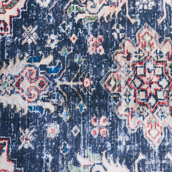 Crafted to perfection, this 2'0" x 5'0" Navy-Beige colored area rug will wrap your floor with elegance and charm. Exuding a striking traditional style, it infuses a classic touch to any space. It boasts a small rectangle shape, fitting seamlessly into your layout. Bearing a thickness of 1/8", this exquisite piece delivers a subtle lift to your decor. Uniquely power-loomed with superior precision, it manifests an impeccable fusion of durability and aesthetic grace. Made from high-quality Polyester Pile, this rug guarantees an ultra-soft touch and long-lasting usage. Manufactured in China, it encapsulates exceptional workmanship and quality. Not just a feast for your eyes, our rug affirms practical use with its washable feature. No need to worry about slips or falls, as it is designed with a slip-resistant characteristic for additional safety. Indulge your living space in luxurious comfort and classic style with this Navy-Beige Area Rug.