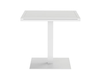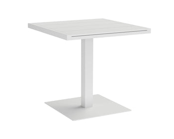 The Merano Dining Table is a modern take on classic design. Sleek lines define its striking silhouette. Constructed from white powder-coated aluminium with a slatted table top.