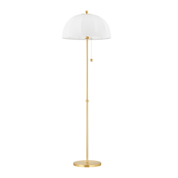 Inspired by mid-century Danish design, Meshelle features a whimsical umbrella shape. Light flows both through the shade and softly glows around it. Aged Brass accents on the finials, chain detailing, and the floor lamp's pull chain, add a sophisticated touch to this usable fixture. Part of our Home Ec. x Mitzi Tastemakers collection.